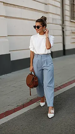 So, you’re heading to Istanbul and want to look stylish without resembling a tourist wearing socks with sandals? This outfit is perfect! Picture yourself strolling through the Grand Bazaar, sipping Turkish coffee, and haggling for the coolest souvenirs. With these light blue pants and a crisp white shirt, you’ll look so effortlessly cool, locals might actually ask you for directions!