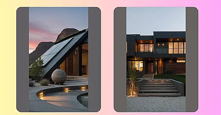 Paragraph 1: Imagine this: you’re chilling by your infinity pool, sunset painting the sky in amazing shades of pink and orange, and your super-stylish, modern contemporary home is soaking it all up. This isn’t some futuristic space station; it’s a real-life house, and it’s eco-friendly to boot! That rooftop isn’t just for looks; those are solar panels, helping the house power itself. Talk about combining cool design with saving the planet – it’s like having a super-powered, environmentally-conscious party pad!