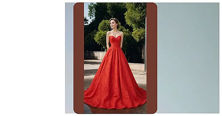 Forget everything you thought you knew about wedding dresses, because this fiery red gown is here to flip the script! This isn’t just a dress; it’s a major statement. Walking down the aisle in this would totally make your grandma spill her tea, but in the best way possible. It’s for the bride who wants to be unforgettable, showing up like a total boss and making sure everyone knows who runs the show, even if it’s just the dance floor!