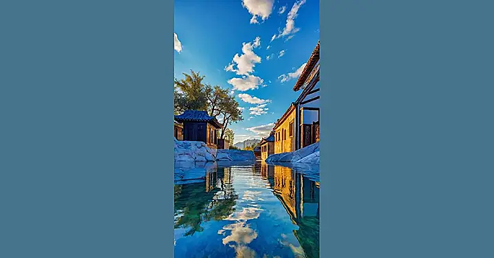 Forget boring old photos of your cat (no offense, Mittens) – this scene is ready to give your iPhone wallpaper a serious glow-up! We’re talking crystal-clear water so blue it makes the sky jealous, perfectly reflecting those cool, traditional buildings and fluffy white clouds. It’s so sharp, thanks to that sweet 4K resolution, you might accidentally try to dip your finger into your screen for a refreshing splash. Talk about bringing instant vacation vibes straight to your lock screen!