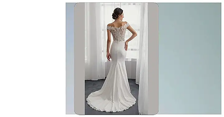 Now, picture yourself dancing the night away in this gown. It’s got a bit of a mermaid vibe, so you can totally pretend you’re Ariel trading her voice for true love. Just try not to trip on the train while you’re making your grand exit – that would be a total “oops!” moment for sure. All in all, this dress is here to help you shine on your big day.