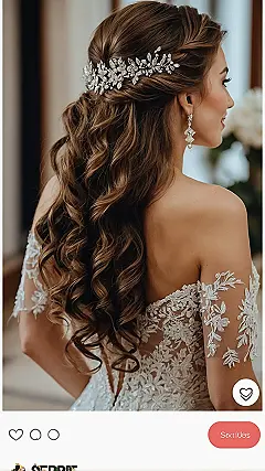 Getting ready for a big day means your hair needs to be on point, and this picture is basically the definition of ‘hair goals’! This gorgeous wedding style (partially up, totally amazing) totally nails that elegant-yet-fun vibe. It’s like her hair decided to throw a fancy party on top with that sparkling accessory, while the rest decided to chill out in perfect, bouncy waves. This look makes anyone feel like a total star walking into a room, ready to collect all the compliments.