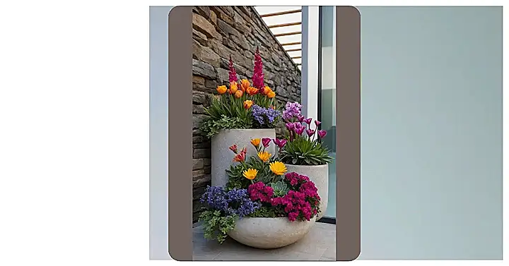 Check out these awesome deck planters! They’re practically throwing a party, and everyone’s invited – especially the color spectrum! With orange tulips doing a cheerful wave, bright pink spires reaching for the sky like they’ve spotted a celebrity, and a whole mix of purples and yellows just chilling out, these aren’t your grandma’s quiet little potted plants. These deck planters are basically a botanical rave, making sure your outdoor space is anything but boring. Your patio walls probably wish they looked this good.