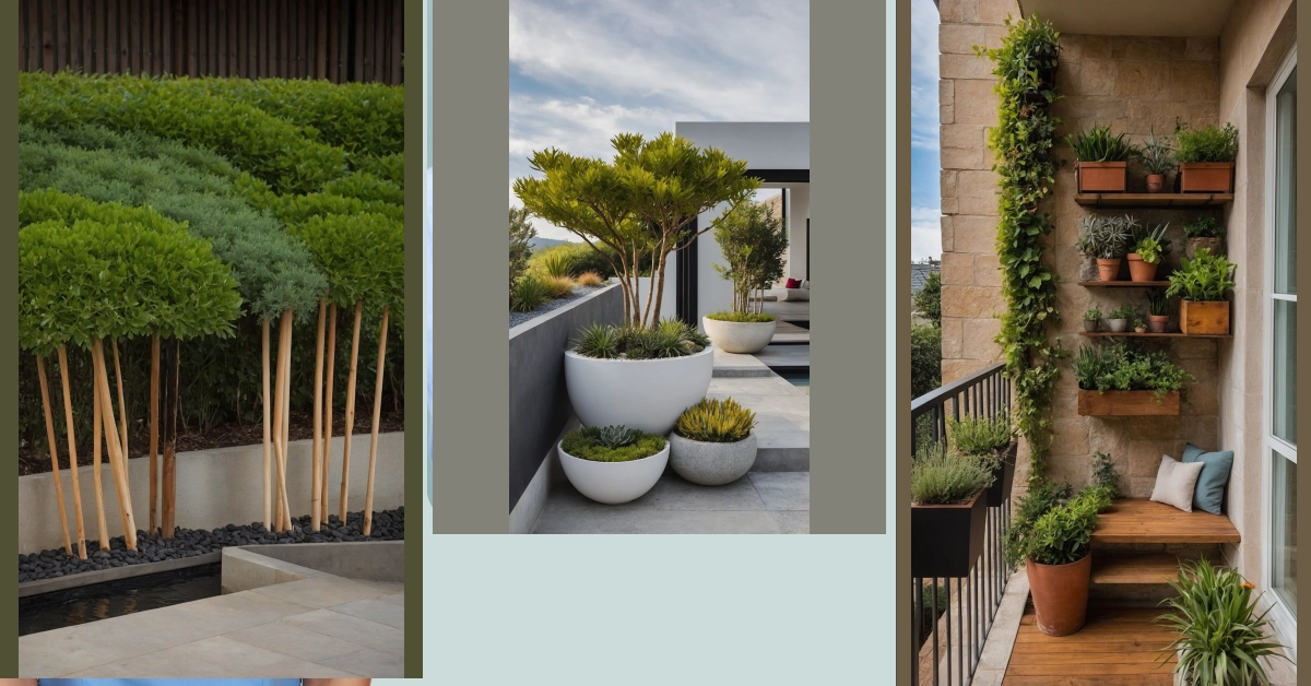 Check out these plants! They look like they’ve just stepped out of a fancy salon, especially the ones with those super smooth, light-colored trunks. It’s like they decided, “Why grow a thick, boring trunk when you can rock a chic, slender look?” Tucked into these cool deck planters, they’re basically the fashion models of the plant world, strutting their stuff next to a shimmering water runway. They’ve even got their own black pebble carpet, which is way fancier than regular dirt. These aren’t your grandma’s flower pots; these are where plants come to feel fabulous and add serious style to any outdoor hang-out spot.