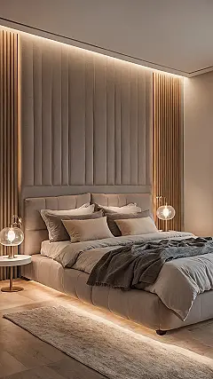 Walking into a bedroom like this feels like stepping into a giant marshmallow. The warm lights make everything feel super mellow, and that fluffy rug looks like it’s practically begging you to kick off your shoes and wiggle your toes in it. It’s the kind of place where you could spend a whole rainy Saturday buried under that fuzzy throw, maybe reading or just staring dreamily at the ceiling. Just try not to fall asleep for a week straight; the cozy vibes are strong with this one.