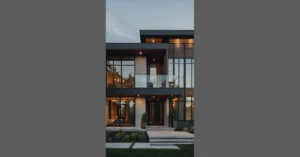 This house may look like it’s playing dress-up, trying to be all “old-school” with its clean lines and sleek design. But let’s be real, this isn’t your typical, stuffy traditional. Instead, it’s as if someone took the best parts of classic architecture and then gave it a seriously cool, modern makeover. The big windows give it a real “look-at-me” vibe, while the wood accents soften the look and make it warm and inviting.
