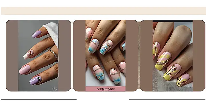 These nails scream “I have a horse named Buttercup and I vacation in the Hamptons!” The pastel colors are super classy and low-key, perfect for subtly flexing on everyone at the country club. Plus, those little gold details? They’re like tiny trophies for being naturally good at tennis or knowing all the forks at the dinner table.
