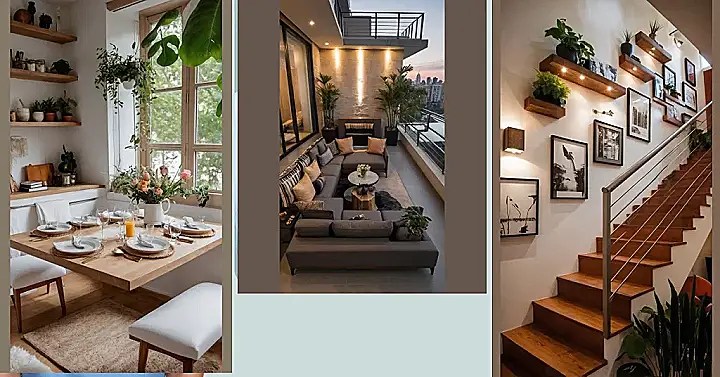 Tired of staring at a blank wall that looks like it’s silently judging your life choices? Giving your apartment walls a glow-up is way easier and more fun than it sounds! Just check out this awesome staircase area – those floating wooden shelves, complete with cool plants and tiny spotlights, make a huge difference. It’s like turning a plain white canvas into your own personal gallery, but instead of fancy art critics, you get to impress your friends and maybe even your pet goldfish. Adding these simple touches can completely transform a boring space into something vibrant and full of personality.