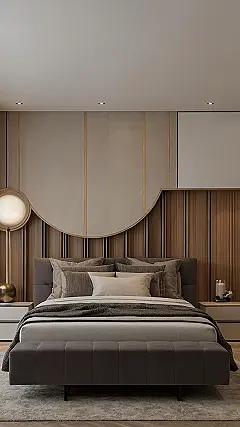 Check out this bedroom! It looks so calm and peaceful, like a fancy hotel room but way cooler because it’s yours. The super detailed headboard is like a work of art, and the soft colors make it look like the perfect place to chill after a long day of school. I’d probably spend way too much time just staring at the headboard instead of doing my homework, but hey, priorities, right?