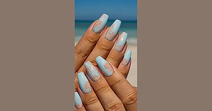 These aren’t just any nails; they’re like a miniature beach vacation glued right onto your fingertips! With that awesome light blue color that perfectly matches a clear summer sky or a cool ocean, and those delicate pink flowers that practically look like they’re swaying in a gentle breeze, these fun summer nails are practically begging for a picture-perfect moment. They’re so bright and cheerful, you might even find yourself instinctively reaching for a frosty drink or a beach ball. Forget just looking ready for summer, these nails are giving off serious “I’m on a perpetual holiday” vibes!