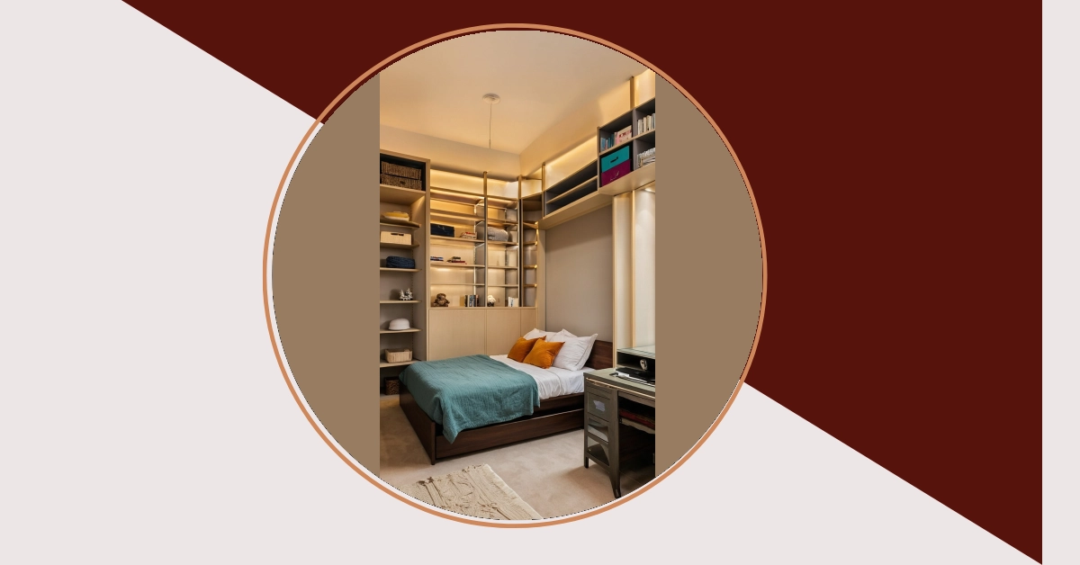 This bedroom isn’t just a place to sleep; it’s a storage superhero’s headquarters! Imagine all the books, clothes, and fuzzy teddy bears you can fit on those amazing built-in shelves. It’s like having your own personal library, closet, and toy museum all rolled into one stylish space. Forget searching under the bed for your favorite socks – you’ll find everything neatly organized and easy to access, leaving you more time for sleeping (or maybe just staring at your awesome shelving).