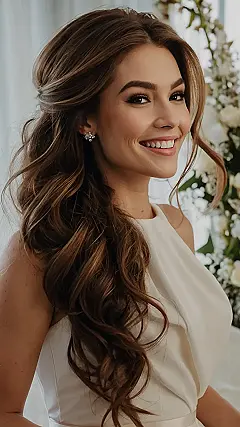 If you’re leaning towards a boho vibe, you’re in luck! Bohemian styles are all the rage, featuring gorgeous waves and delicate hair accessories that ooze romance. Perfect for weddings in fields or intimate backyard celebrations, these half down, half up looks exude laid-back elegance. Imagine how lovely you’ll feel as you sway to the music under the stars, hair dancing with the breeze!
