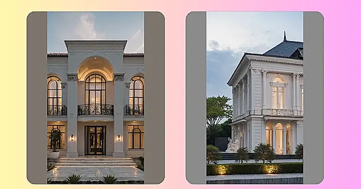 This kind of neoclassical style is all about looking grand and orderly, like someone decided regular squares and rectangles were just too boring and added some extra decorative bits and curvy arches to spice things up. It’s less about sleek modern minimalism and more about saying, “Hey, look at me, I’ve got history (or at least a really good history textbook).” It’s pretty cool, in a ‘wear a toga to the grocery store’ kind of way, bringing some ancient vibes to a very solid, very large, very non-ancient house.