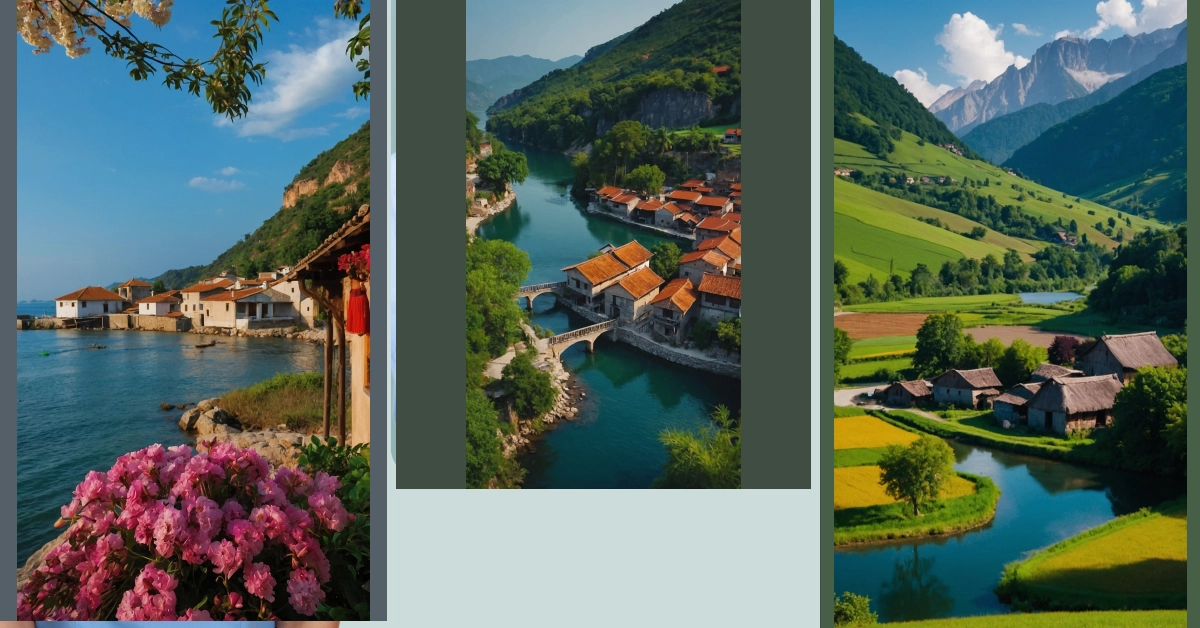 Seriously though, look at those houses! They’re all cozy and close together, like best friends sharing secrets. I bet they have amazing stories to tell about their lives in this picturesque, natural paradise. Can you imagine playing hide-and-seek amongst those amazing mountains? It’s a whole different world from our usual busy lives, and it’s so peaceful and serene, almost like it’s a secret hideout just waiting to be discovered. It makes you wonder what adventures await around every bend of that river!