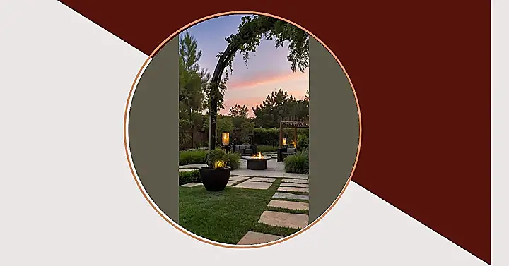 This garden is seriously dreamy! Imagine relaxing under that vine-covered archway as the sun dips below the horizon, painting the sky in gorgeous shades of orange and pink. It’s like a scene from a movie, but way more comfy. There’s even a fire pit for roasting marshmallows (or just warming up your toes!), plus cozy seating areas to chill with your friends. It’s the perfect spot for a peaceful evening, minus the grumpy garden gnomes.