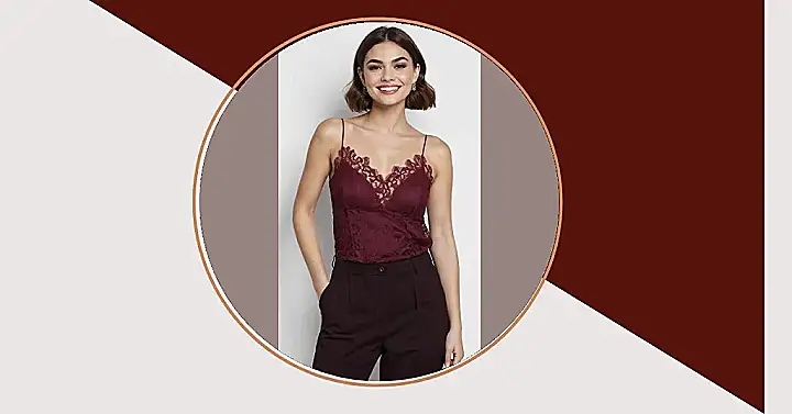 Feast your eyes on this gorgeous maroon lace top! It’s got those delicate straps and intricate patterns that make it look super fancy, like you’re about to attend a secret royal ball or something. But here’s the best part: it’s actually cool enough for pretty much anything. You can rock this without having to practice your ‘elegant pinky lift’ while sipping juice. It’s the kind of top that says, ‘Yes, I look amazing, and no, it didn’t take me three hours to get ready.’ Seriously, it’s like magic, making you look effortlessly chic even on a Tuesday.