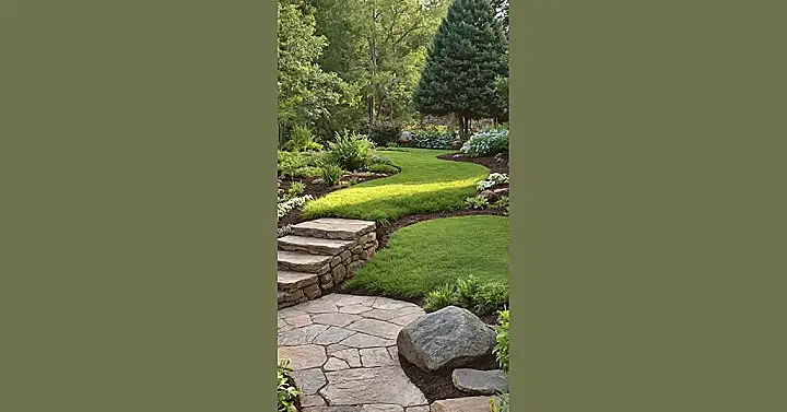 Thinking about your backyard might usually bring up images of endless mowing or that one suspicious brown patch that refuses to leave. But what if it could be a whole lot cooler than just a place to kick a soccer ball? Look at this awesome setup! With cool stone steps that look like they’re straight out of a fantasy game and flowers bursting with every color, it’s like this backyard decided to get a serious glow-up. Forget boring flat lawns; this is where you build your own outdoor kingdom, complete with winding paths and plants that actually want to hang out.
