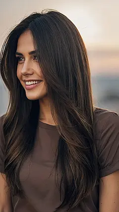 Want hair that flows like a chocolate waterfall? Well, look no further than this long layers situation! It’s like your hair finally gets a life coach, and that coach says, “Let’s add some dimension and bounce!” Seriously, long layers are the superhero cape your hair never knew it needed. Get ready to unleash your inner hair goddess.