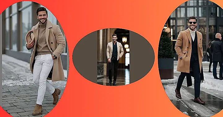 Hey there, fashion-forward fellas! Winter’s chill doesn’t mean your style has to hibernate! Check out this dude rocking a seriously awesome winter look. That camel-colored coat is totally on point – it’s like a warm hug for your shoulders, but way more sophisticated than your grandma’s knitted blanket. And those dark pants and brown shoes? It’s the perfect balance of stylish and practical. Who needs snow boots when you can look this good while navigating the icy sidewalks? (Just maybe avoid slipping, okay?)