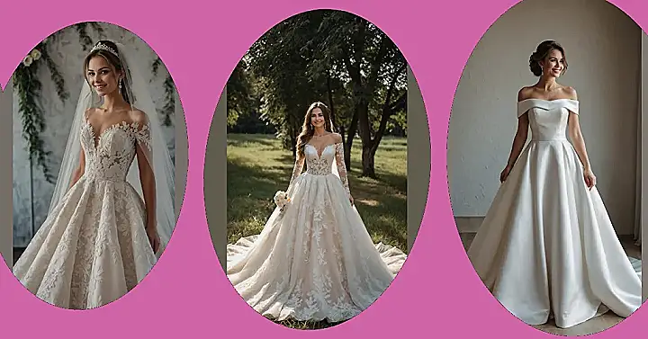 And let’s be real, this dress is basically giving major “main character energy.” That off-the-shoulder neckline? Super chic, showing off just enough while keeping it classy, which is perfect for looking great in all those selfies without having to adjust constantly. Plus, that full skirt looks so fun to swish around, even if it might secretly be trying to trip up your significant other during the first dance. In 2025, it seems wedding fashion is all about feeling amazing and looking like a million bucks, but also being able to eat cake without feeling like you’re stuck in a cardboard box. This dress is basically saying, “I’m here to slay, but also, pass the appetizers!”