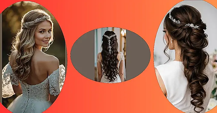 Feeling like royalty on your big day? Totally possible, starting with your hair! Check out this awesome hairstyle in the picture – it’s got these beautiful, flowy waves that look like they just tumbled down from a cloud in a fairy tale. And let’s not forget that sparkly hairpiece! It’s like a little bit of magic holding everything perfectly, making you feel like you just stepped out of a storybook, maybe without the part where you have to clean a chimney or fight a dragon (unless your mother-in-law is scary, kidding!).