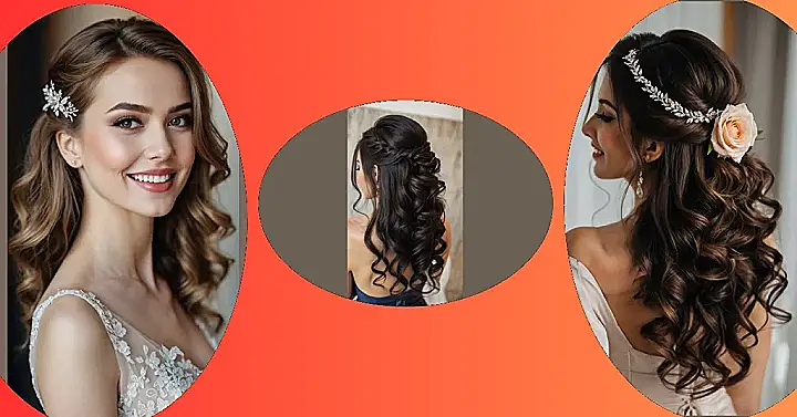 This isn’t just a pretty hairstyle; it’s practically magic! All those perfectly placed curls mean you won’t have to worry about looking like you just wrestled a giant pile of autumn leaves – your hair will stay stunning from the ceremony to the dance floor. The half-updo keeps things elegantly in place while letting those beautiful waves flow freely, perfect for capturing those golden hour photos. Plus, with a hairstyle this gorgeous, you might just make the actual autumn trees a little bit jealous of your natural beauty (and your excellent taste!).