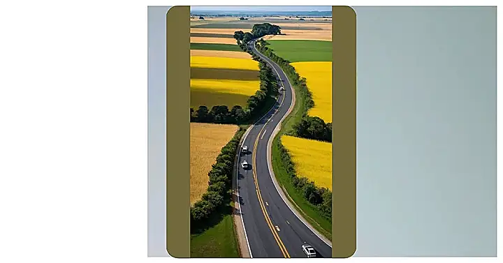 Imagine hopping into a car and cruising down this road! It’s like someone spilled a giant box of crayons all over the landscape. You’ve got fields of bright yellow flowers, patches of green grass, and even some brown thrown in for good measure. This definitely beats staring at billboards on the highway; it’s a real-life screensaver, and you’re living in it!