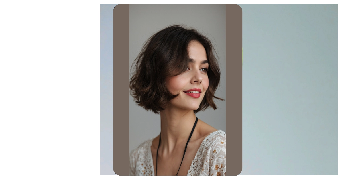 This awesome haircut isn’t just any regular bob; it’s a French bob, and it’s basically telling your hair to chill out and look fabulous on its own. See how the hair in the picture has that cool, slightly wavy, “I just woke up looking this good” vibe? That’s the magic! It’s like your hair went on a fancy vacation to Paris and came back with an irresistible, effortlessly chic attitude, making you look super stylish without spending hours with a curling iron.