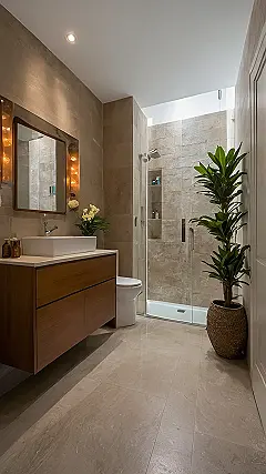 Imagine stepping into your bathroom and suddenly you’re at a super fancy spa, but without the awkward small talk or having to wear a paper robe! This bathroom is totally rocking the spa vibes with its soft lighting, smooth marble, and super clean look. It’s like they took all the stress and chaos of high school and just *poof* vanished it into thin air. Who knew your shower could be your personal chill-out zone?