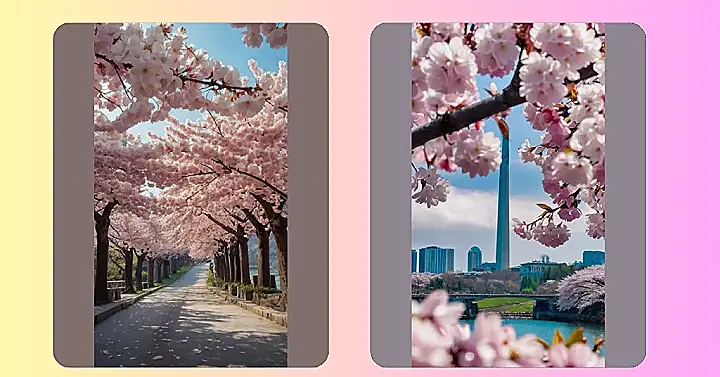 Want to escape reality for a bit? This pic is like peering into a magical, slightly warped world of cherry blossoms! Seriously, who knew flowers could look so cool and artistic? The image looks like it’s been sliced and diced but put back together in the prettiest way possible.