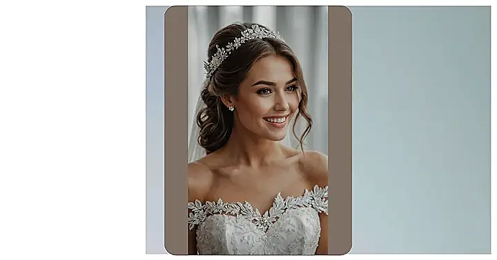 This bride is absolutely glowing, and a big part of that sparkle is her amazing classic bridal hairstyle! Her hair isn’t just styled; it’s holding a dazzling tiara that makes her look straight out of a royal storybook. With all those pretty pearls and crystals, it’s like a crown saying, “I’m the queen of this day!” The way her hair is gently pulled back, with those soft, face-framing curls, shows off an elegant updo that’s totally timeless. It’s the kind of gorgeous look that makes you feel like royalty, even if your biggest decision today is choosing which Netflix show to binge next.