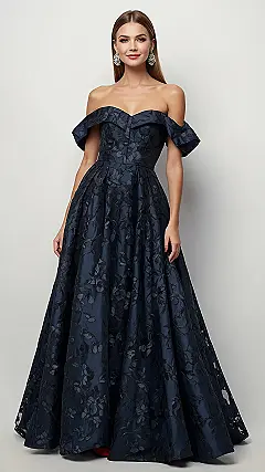 Stepping into this classy gown is like hitting the upgrade button on your entire existence. Seriously, one minute you’re just you, the next you’re floating into the room, possibly with a faint, imaginary choir singing your theme song. This isn’t just a dress; it’s a full-on experience, making you wonder if you should be walking the red carpet or just gliding through the school hallway looking effortlessly fabulous. The dark blue and subtle floral patterns just scream ‘sophisticated, but also ready to dance until the DJ packs up.’
