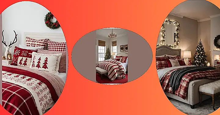 Getting out of bed would be a real challenge in this festive retreat. Just look at that cloud-like white fuzzy blanket! It probably feels like sleeping on a pile of marshmallows, especially with that chunky knit throw adding extra snuggle points. And those deep red and plaid pillows? They’re like little gifts themselves, just begging you to curl up with a hot chocolate and hibernate until spring. Honestly, if my room looked this good, my biggest problem would be convincing myself to do anything else besides snooze and enjoy the holiday magic.