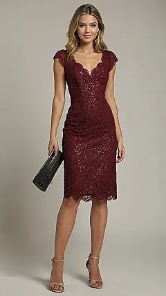 Getting ready for a party often means facing the age-old dilemma: “Will I look cool, or will I trip over my own dress trying to grab a slice of pizza?” Good news! This gorgeous knee-length party dress, just like the stunning maroon one our model is showing off, solves that problem. It’s the perfect length for busting out all your favorite dance moves without worrying about accidentally becoming best friends with the floor. Plus, the elegant lace design means you’ll look super sophisticated while doing it!