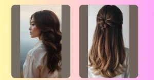 Getting this half-up style is super popular for a reason. Itโs the perfect mix of “I tried really hard” and “I’m effortlessly gorgeous.” Itโs way less stressful than trying to make every single hair stay in a bun for eight hours straight โ we all know how that ends! And letting half your hair hang loose in those beautiful waves just makes you feel a bit more relaxed, even if you’re secretly freaking out about tripping in your fancy shoes. It’s basically the hairstyle equivalent of wearing sweatpants under a ballgown (but, you know, the hair version looks good).