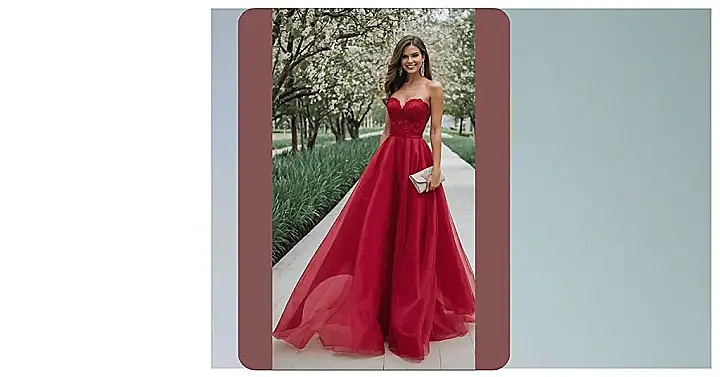 This stunning red evening dress is practically screaming, “Hello, world, I’m here to sparkle!” With its gorgeous lace top and a skirt so full you could probably hide a small dog (or a semester’s worth of homework) under it, you’d totally feel like the main character at any fancy event. Just try to resist the urge to dramatically twirl everywhere you go – though with a dress this fabulous, it’s a valid struggle.