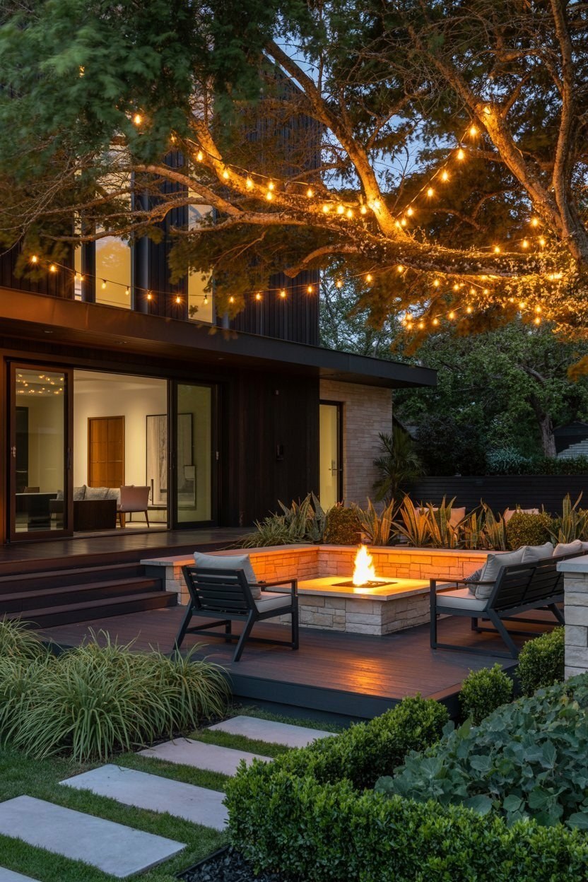 This backyard architecture seamlessly blends deck design with garden vision board pictures, offering luxury house design ideas for any outdoor living project. It’s the ultimate fire pit backyard destination.