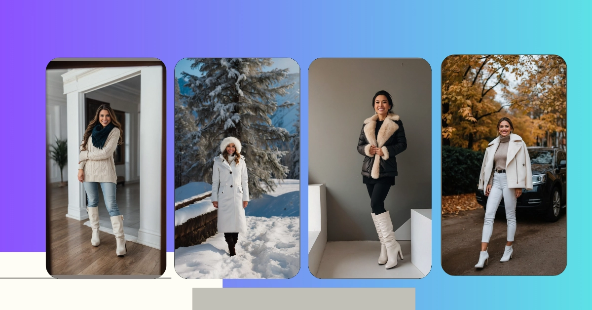 **Paragraph 1:** BRR! Winter’s here, and let’s be honest, it’s freezing! But this picture shows how to conquer the cold in style. Check out this awesome outfit – that fluffy, creamy coat is practically begging to be snuggled into, and those white jeans and boots are seriously chic. It’s like a snowy dream come true! Forget shivering – this look is all about staying warm AND looking super fashionable. Imagine strolling through a winter wonderland (maybe with some fake snow trees like the ones in the pic!) feeling totally cozy and confident.