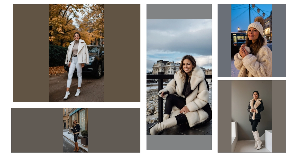 **Paragraph 1:** BRR! Winter’s here, and let’s be honest, it’s freezing! But this picture shows how to conquer the cold in style. Check out this awesome outfit – that fluffy, creamy coat is practically begging to be snuggled into, and those white jeans and boots are seriously chic. It’s like a snowy dream come true! Forget shivering – this look is all about staying warm AND looking super fashionable. Imagine strolling through a winter wonderland (maybe with some fake snow trees like the ones in the pic!) feeling totally cozy and confident.
