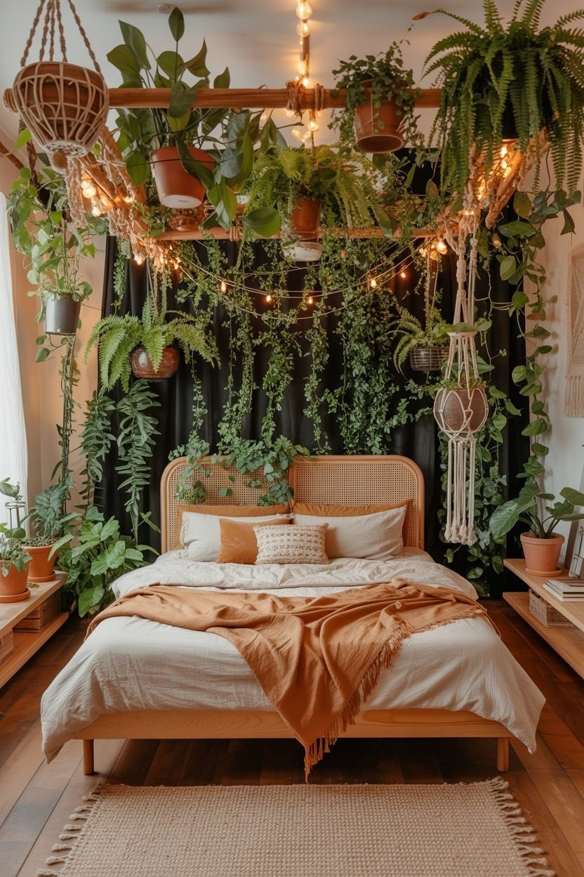 #1 Boho Garden Bedroom: Lush Greenery & Cozy Plant Decor