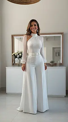 This outfit is like a breath of fresh air! It’s super stylish, but also comfy enough to wear all day long. The white pants are super flattering and the top is both chic and playful, with that cool cutout. And let’s not forget the fabulous belt! This whole look is like a modern-day princess, ready to take on the world in style.