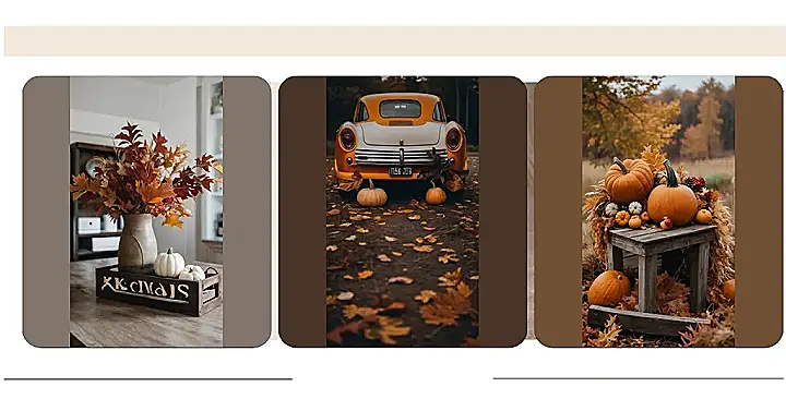 This picture screams “cozy autumn vibes” and is making me want to curl up on that comfy couch with a hot cup of cocoa! They’ve really gone all out with the natural fall decor, like the branches of leaves hanging from the ceiling—it’s like the forest came inside! I especially love the cute pumpkins on the coffee table, and the cozy candle adds a touch of magic to the whole scene. It’s like they took all the best parts of fall and brought them indoors, and I’m definitely here for it!
