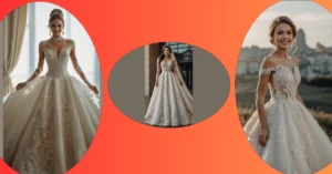 Wearing a dress like this means you’re ready for anything a fall wedding throws at you, from outdoor photos with those slightly chilly breezes (hello, off-shoulder but still elegant!) to tearing up the dance floor when the DJ plays your jam. Just make sure you’ve practiced your epic entrance walk, because this dress practically demands it. And with that stunning smile and those sparkly earrings, you’re not just a guest, you’re practically part of the wedding decor (in the absolute best way possible, obviously!). Who knows, you might even inspire a few “oohs” and “ahhs” – maybe even from the wedding cake itself if it had eyes!