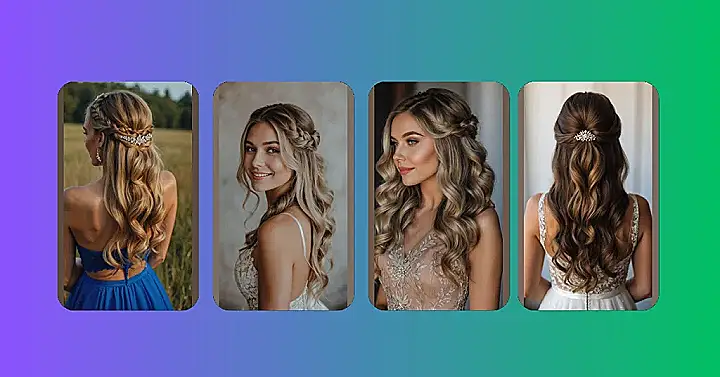 Getting ready for a wedding is half the fun, especially when it comes to deciding what to do with your hair! Forget trying to wrestle with bobby pins for hours; cute bridesmaid hairstyles like the beautiful half-up braid with flowy waves in the picture are totally stealing the show these days. This look is perfect because it keeps some hair back and out of your face for important moments, but lets those gorgeous curls hang loose so you feel fancy and ready to boogie on the dance floor later without your style feeling too stiff.