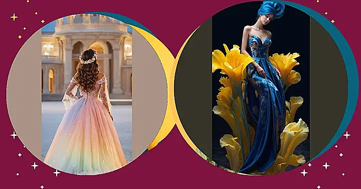 Check out this lady in her totally extra dress! It looks like it’s made of unicorn feathers mixed with a rainbow sunset, which is pretty much the coolest combination ever. Putting this picture as your phone background is a power move; it instantly upgrades your screen from ‘basic’ to ‘ready for a royal ball, but also super chill.’ Seriously, just looking at it might make you feel a little bit more fabulous while you’re scrolling through TikTok or trying to find that one homework assignment you swear you finished.