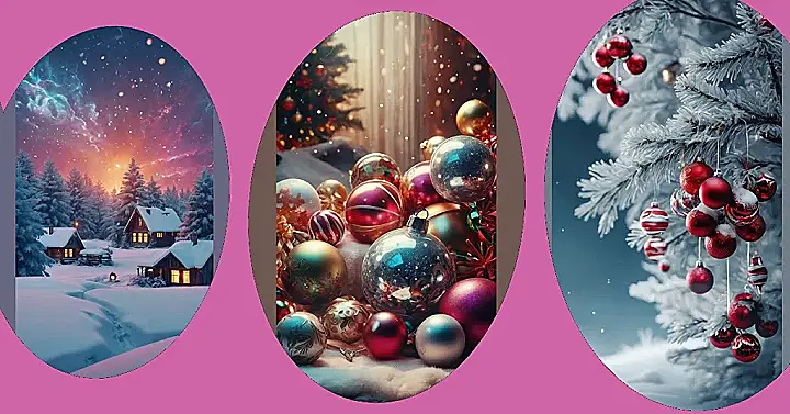 This picture is like stepping into a winter wonderland! It’s got a snowy little house with candy canes and a Christmas tree covered in sparkling snow. There are even red ornaments hanging around like candy, just waiting to be unwrapped by Santa. It’s a perfect image to set the mood for the holidays.