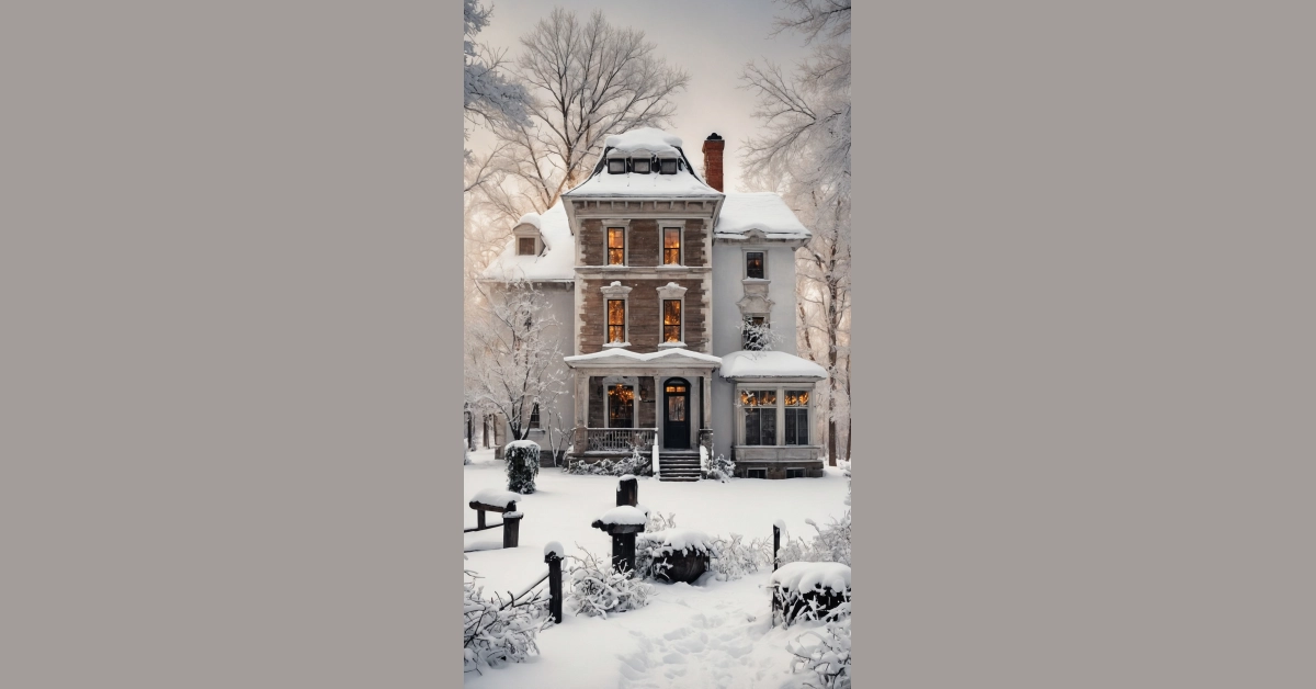 Looking at those warm, golden lights glowing from the windows, you just know there’s some serious coziness happening inside, probably with hot chocolate and zero plans to brave the frosty wonderland outside. That roof, piled high with snow, looks like it’s wearing the world’s fluffiest hat, keeping everyone snug as a bug. While the bare trees outside are looking super dramatic and elegant with their icy bling, I’m pretty sure the best view is from behind one of those glowing windows, wrapped in a blanket, watching the snow fall. This scene is basically a giant invitation to embrace full-on winter mode, even if it’s technically still November!