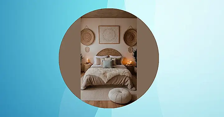 And can we talk about those details? The cool woven headboard and all those earthy straw circles on the wall are basically telling your old band posters to step aside. There’s even a cute little floor pillow that’s just begging you to chill out with a book or maybe just stare blankly into space, completely mesmerized by how coordinated everything is. It’s so effortlessly chic, you might actually feel bad messing it up with your usual pile of clothes – almost.