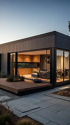 Forget tiny houses; these prefab homes are seriously stylish! Look at this place—it’s like stepping into a modern art museum, but instead of staring at paintings, you’re staring at your awesome new living room. The sleek design and cool wood make it feel super fancy, but the “affordable prefab homes” part means you don’t have to sell a kidney to own it. Score! It’s basically the best of both worlds: high-end design with a budget-friendly price. Who needs a palace when you can have a modern masterpiece?