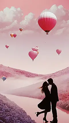 This wallpaper is like the ultimate romantic scene from a movie, but instead of buying popcorn, you get to stare at it whenever you unlock your phone! Seriously, look at those hot air balloons floating around – talk about dreamy! And don’t even get me started on the couple; they look like they’re about to burst into a musical number. Good luck getting any homework done with this as your background, you will be too focused on dreaming about your own rom-com moment!